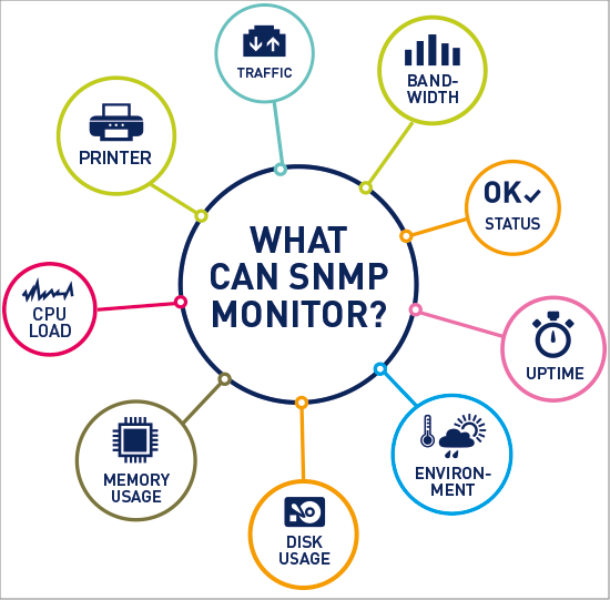 The Simple Network Management Protocol (SNMP) generally requires little configuration once it is set up. Many network devices support it and you can monitor many parameters with it. PRTG provides you with various SNMP sensors. These sensors range from monitoring general parameters to very specific parameters. Choosing the right sensor for SNMP monitoring that gives you the desired hardware parameters is a decision that depends on several factors: the type of hardware you have, what values you want to monitor, and a few others.