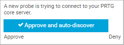 Click Approve and auto-discover to include the new remote probe and network in your device tree and to start the auto-discovery. It discovers devices and automatically creates suitable sensors. Optionally, click Approve to only approve the remote probe without the auto-discovery. The remote probe appears in your device tree.