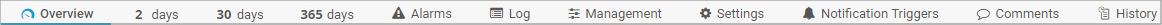 Probe, group, device, and sensor pages have tabs that you can use to navigate between the different options. For example, you can view your network's status, view monitoring results, or change settings.