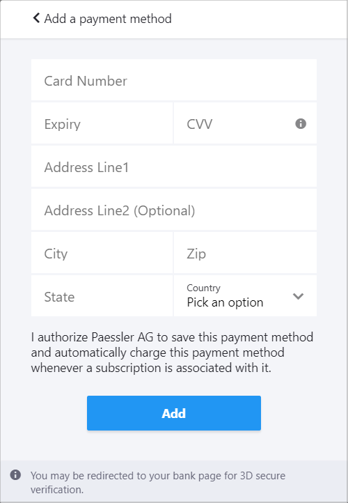 When you purchase a PRTG Hosted Monitor subscription, you need your payment information.