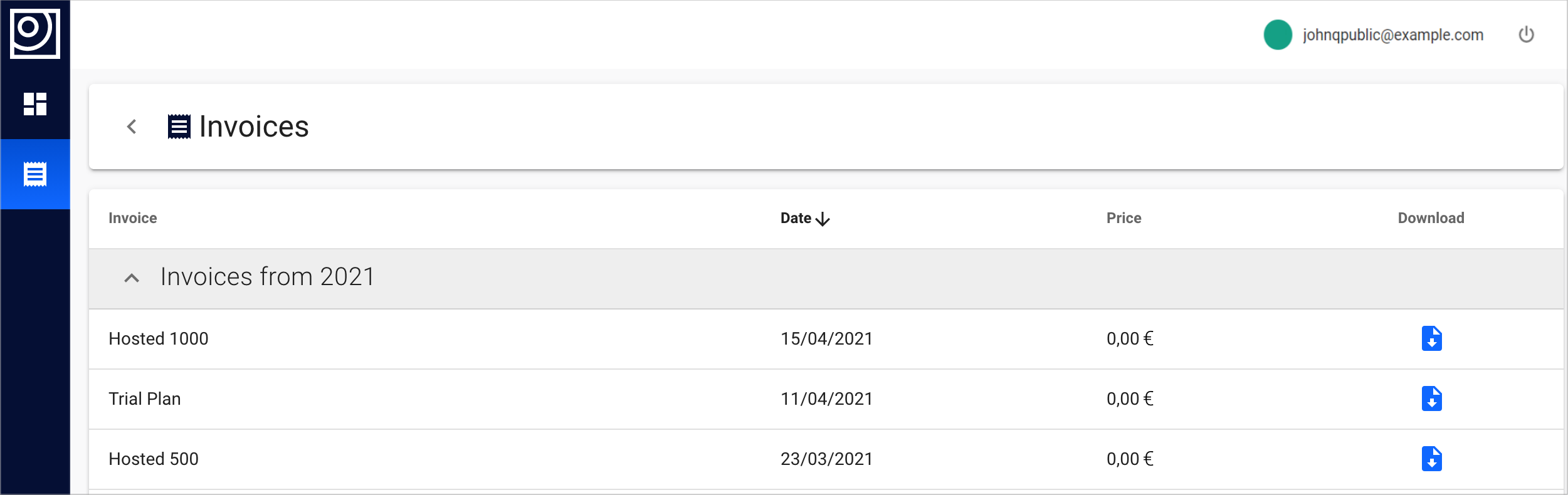 Here you can view and download all of your invoices.