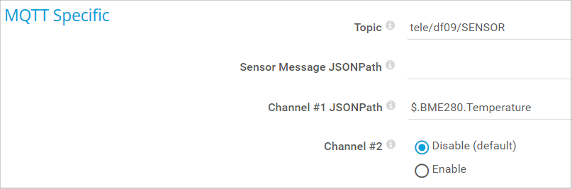 The data must be in valid JSON format. For details about the format, see Channel #x JSONPath below.