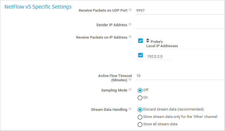 IP address of the sending device. Use this if you have several devices that send flow data on the same port, and you want to divide the traffic of each device into a different channel.