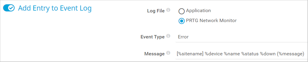 PRTG only uses the subject for the notification methods Send Email and Send Amazon Simple Notification Service Message.