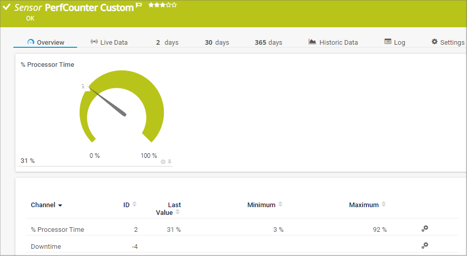 The PerfCounter Custom sensor monitors a configured set of Windows performance counters. You can define your own channels.