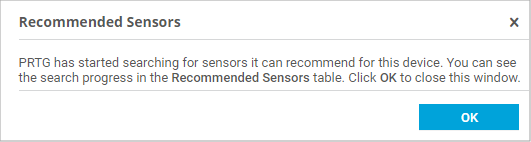 With the Recommended Sensors Detection feature, PRTG can explore any device and check which sensors you have already created. If it finds useful sensors that you have not created yet, you see a list of recommended sensors for your device.