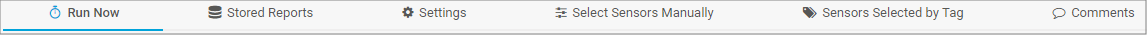 Select the sensors that you want to include in the report by tag. Enter one or more tags. Confirm each tag with the Spacebar key, a comma, or the Enter key. You can use tags to group objects and use tag-filtered views later on. Tags are not case-sensitive. Tags are automatically inherited. The report covers all sensors that have at least one of the tags. You can also leave the field empty.