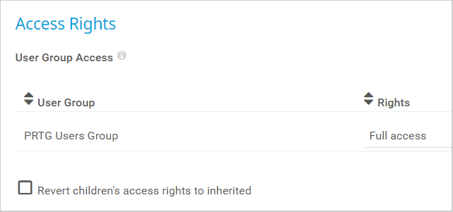 - Write access: Users in this group can see the object, view its monitoring results, and edit its settings. They cannot edit its access rights settings.
