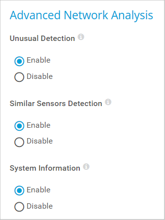 - Disabled: Does not activate the similar sensors detection. PRTG does not consider sensors that are affected by this setting during the similarity analysis.