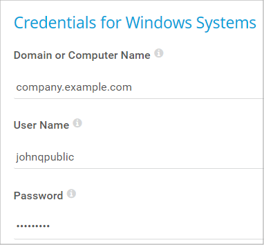 Enter the domain or computer name of the user account with which you want to access the Windows system. PRTG uses this account for Windows Management Instrumentation (WMI) sensors and other Windows sensors.