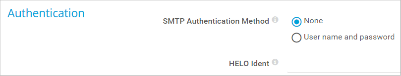 - User name and password: Authenticate against the SMTP server via user name and password.