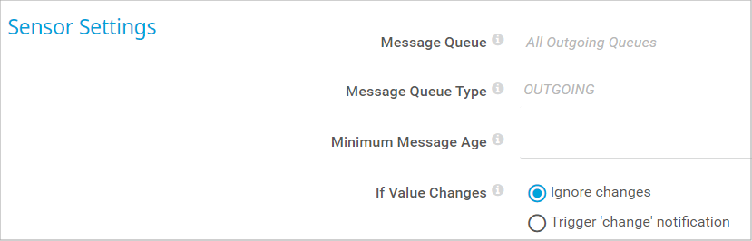 Optionally define an age in minutes that the message must be for the sensor to count it. If you set a minimum message age, the sensor does not regard messages that are younger than this age. If you leave this field empty, the sensor does not check for the message age. Enter an integer value or leave the field empty.